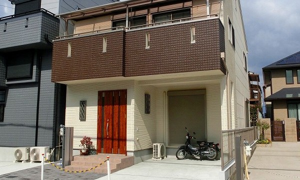 南に面した敷地にブラウンとアイボリーのコントラストが映える外観になっています。内部はお施主様のこだわりが見え、どの部屋も温もりが感じられるような住宅です。