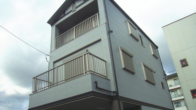 狭小地にそびえる重量鉄骨造の3階建